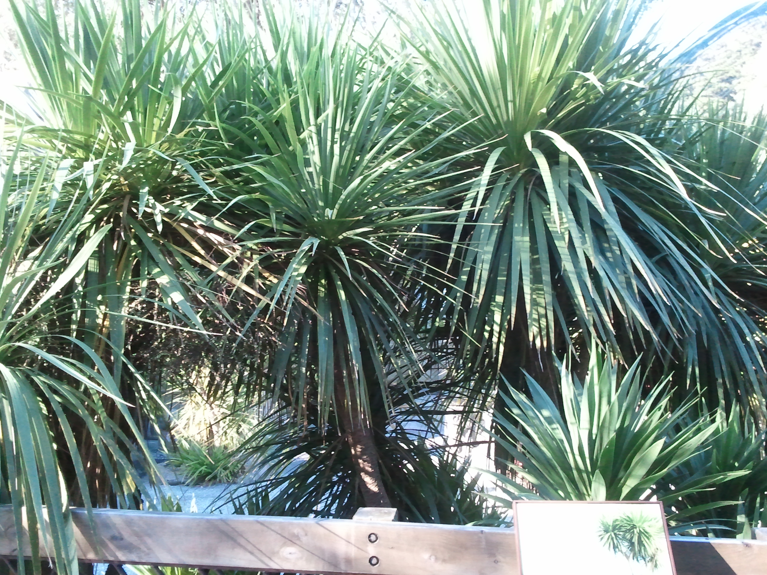 A cabbage tree at Auckland Zoo, so named because to the Sail Age sailors who ate it to prevent scurvy, it tasted like cabbage.